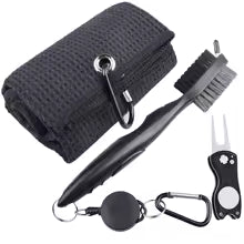 Maintain pristine club faces and grips with this essential three-piece golf maintenance set. The compact brush efficiently removes dirt and grass from clubheads, while the included hand towel dries and polishes for a flawless finish. The divot tool repairs ball marks on the green with precision. Lightweight and portable, this kit fits easily in your golf bag for course-ready care. Keep your equipment in championship condition.